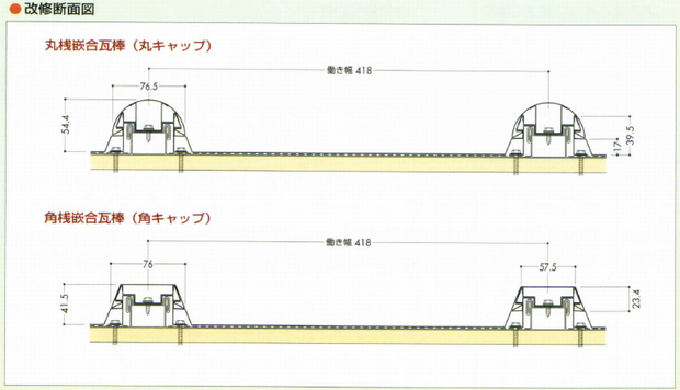 働き巾が瓦棒葺と同じ418mmなので、古くなった瓦棒葺屋根の改修に最適です