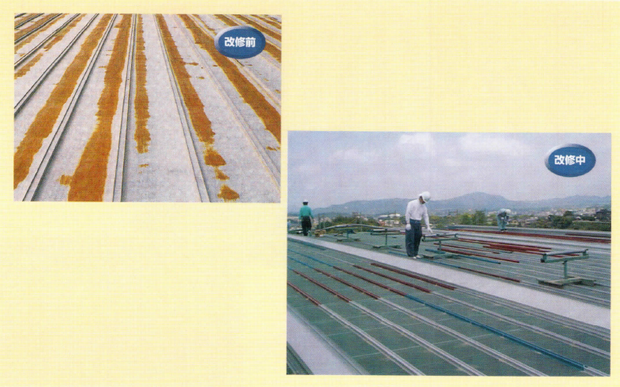 既設の瓦棒葺屋根は剥さずそのまま、その上から施工しますので、特別な養生も不要、室内の作業も続行できます